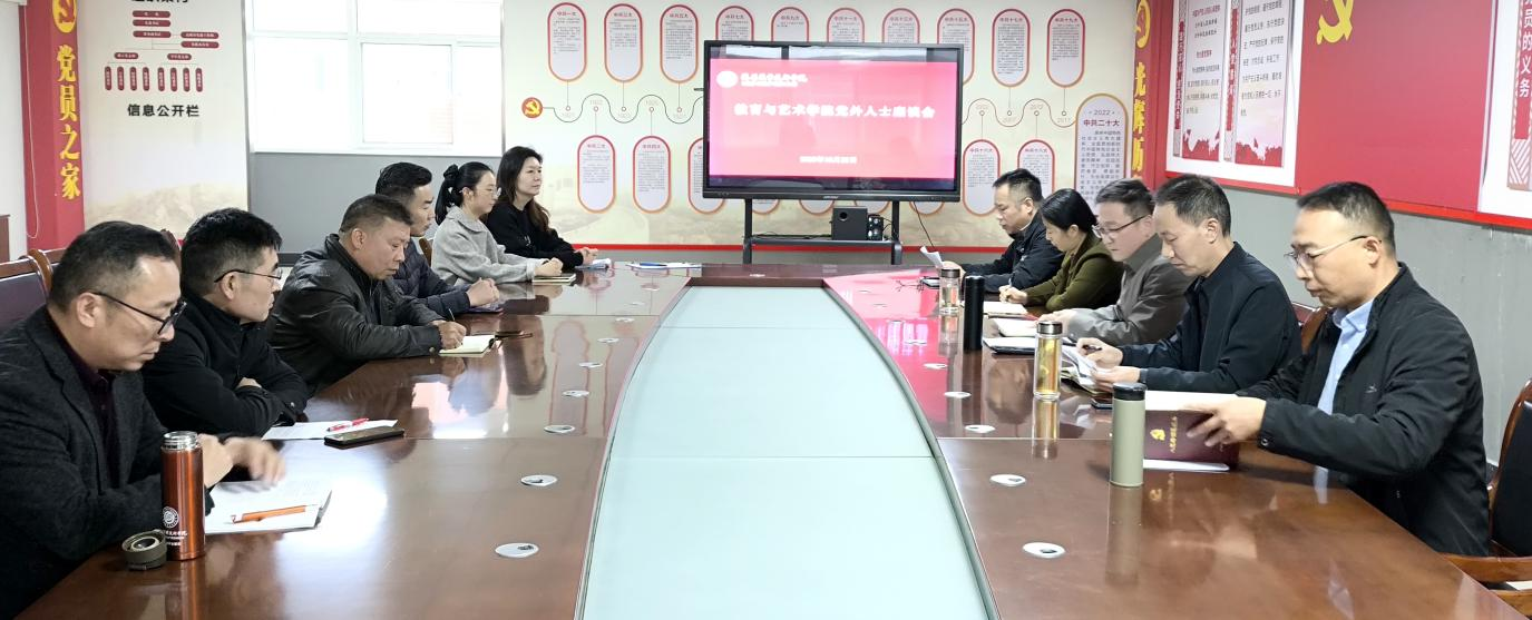 为充分发挥党外人士参政议政作用,凝聚学院发展合力,10月22日下午,教育与艺术学院在拓新楼第三会议室召开党外人士座谈会。学院党总支书记裴小鹏,党总支副书记、院长万中范,党总支副书记秦春风,副院长陈享振,专职组织员郭山雨出席会议,民主党派代表李成君、白露、周利波、张书磊、汪庆华,群众代表王艳平、邢雅纯、刘晨琤、朱豫参加会议。会议由裴小鹏主持。