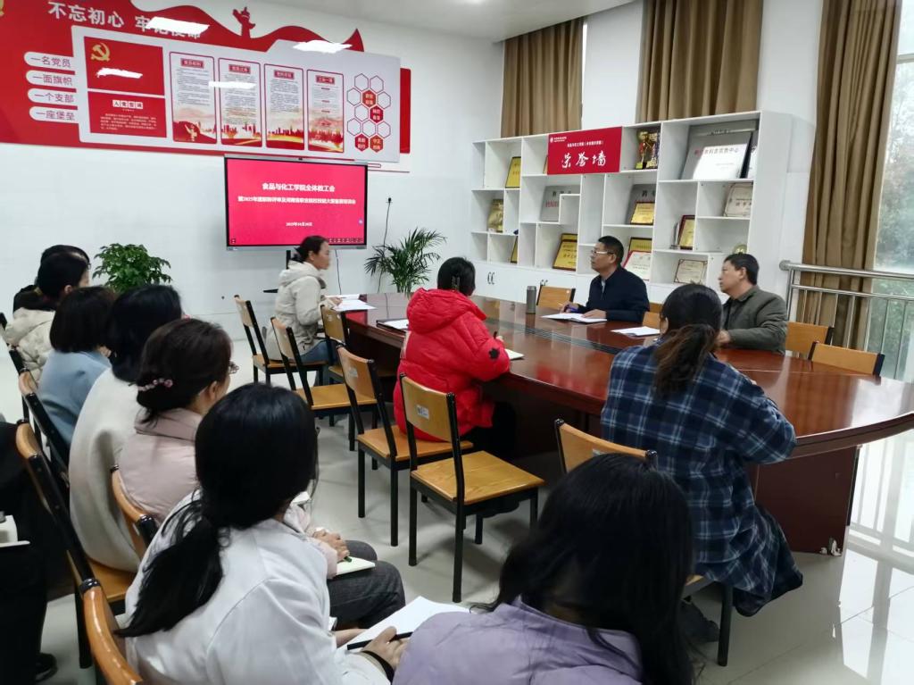 10月30日,食品与化工学院在诚信6号楼A203室召开全体教工会议,专题部署2025年度职称评审与河南省高职院校技能大赛备赛工作。学院党政领导班子及全体教师参会,会议由党总支副书记王跃强主持。
