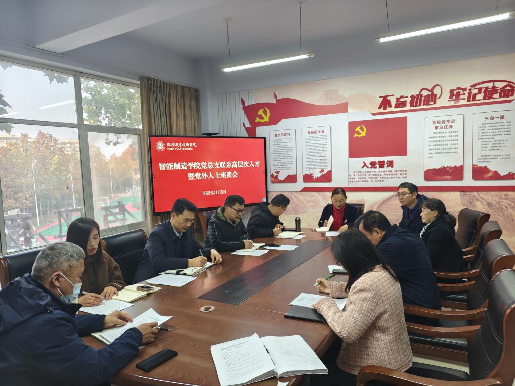 2025年11月5日,智能制造学院党总支召开联系高层次人才暨党外人士座谈会,学院领导班子、高层次人才及党外人士代表参加会议。