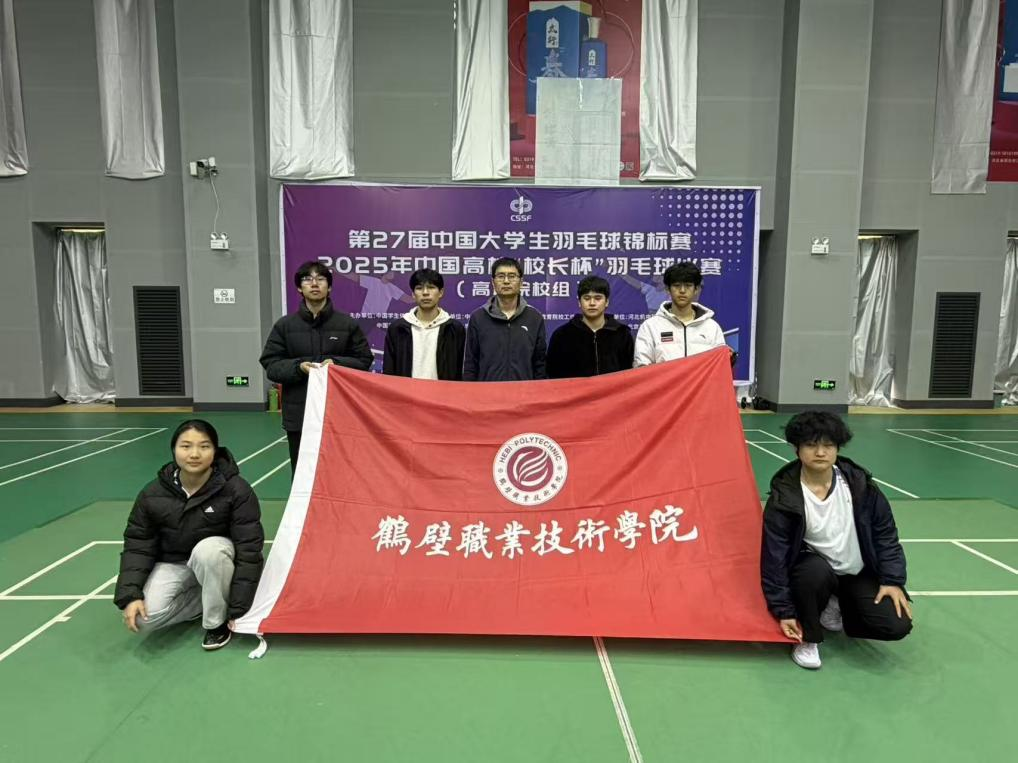 11月2日至8日,第27届中国大学生羽毛球锦标赛(高职高专组)在河北省邢台沙河体育公园圆满落幕。本次赛吸引了各省市高职院校50支代表队共352名运动员参赛。我校学子孙雪龙、董晨旭、杨天宇、孙溳棚组成的代表队在激烈角逐中脱颖而出,勇夺 B 组男子团体第五名,取得历届参赛最佳成绩。