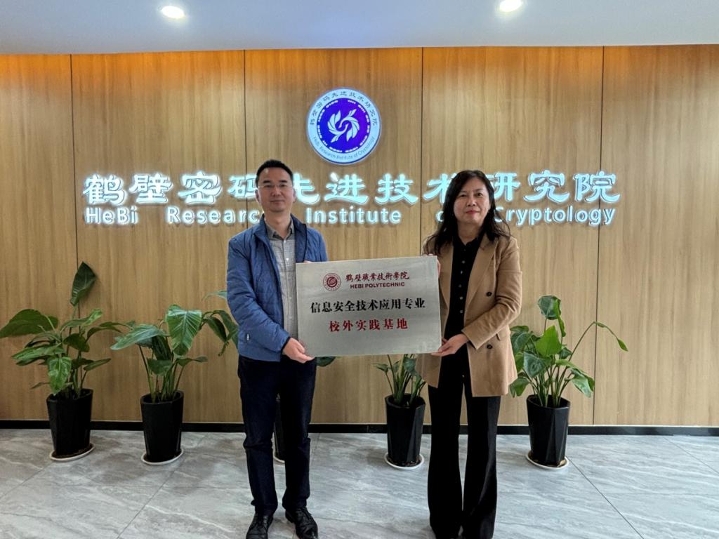 11月14日下午,大数据学院与鹤壁密码先进技术研究院共建的“信息安全技术应用专业校外实践基地”正式挂牌。大数据学院院长李玉清、鹤壁密码先进技术研究院院长甄亚春共同为基地揭牌,标志着双方在深化产教融合、推动协同育人、科研创新与产业服务方面迈出实质性步伐。