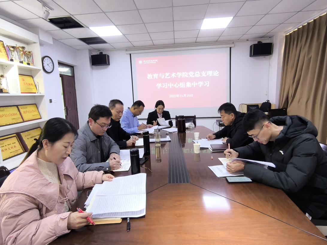 11月19日,教育与艺术学院党总支理论学习中心组在拓新楼第一会议室集中学习党的二十届四中全会精神,体育运动学院党总支书记、院长李辉巡听旁听,教育与艺术学院党总支副书记、院长万中范,党总支副书记、纪检委员秦春风,党总支宣传委员、副院长陈享振,专职组织员、党总支组织委员、统战委员郭山雨参加并交流发言,党总支书记裴小鹏主持。