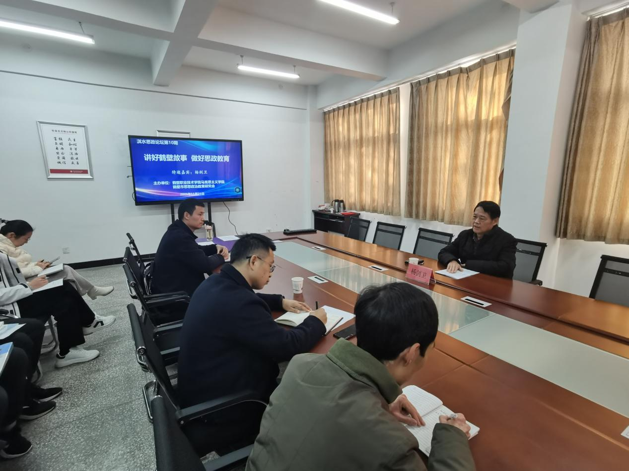 11月21日,第10期淇水思政论坛在马克思主义学院会议室成功举办。本期论坛由马克思主义学院与鹤壁市思想政治教育研究会联合主办,特邀鹤壁市社科联书记、主席杨剑卫作题为“讲好鹤壁故事 做好思政教育”的专题报告。论坛由学院党总支书记、院长王勇强主持,马克思主义学院全体教师,鹤壁汽车工程职业学院思政课教师代表参加。