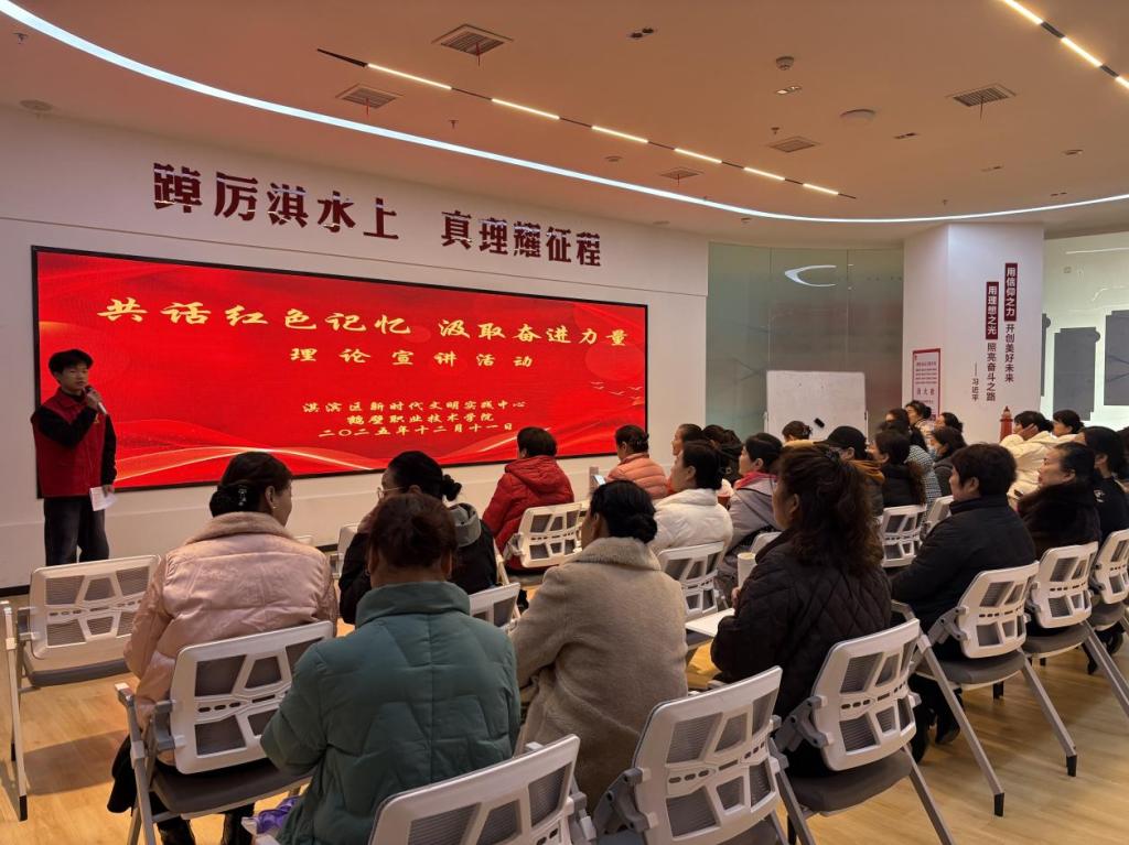 12月11日,数字经济学院学生党支部“青扬”宣讲团走进淇滨区新时代文明实践中心,以“共话红色记忆 汲取奋进力量”为主题开展第五期理论宣讲活动,用生动表达传递红色精神,获得现场高度认可与表扬。