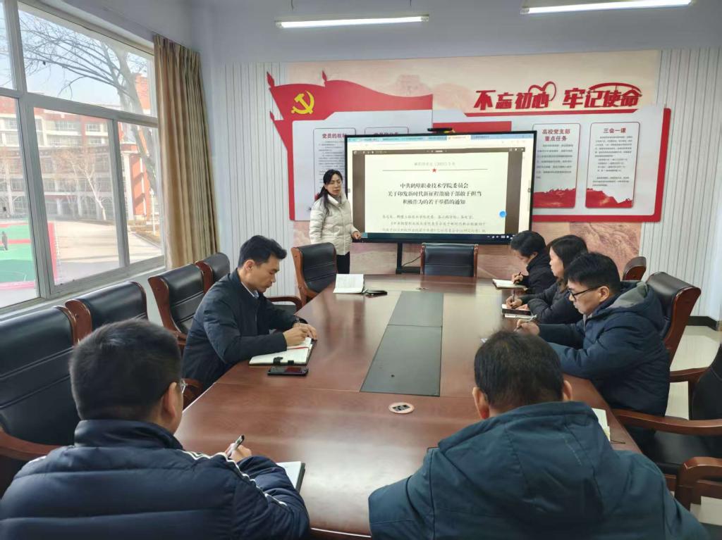 2月24日上午,智能制造学院党总支理论学习中心组重新学习了学校《关于新时代新征程激励干部敢于担当积极作为的若干举措》的文件精神,本次学习智能制造学院党总支书记崔国英领学。