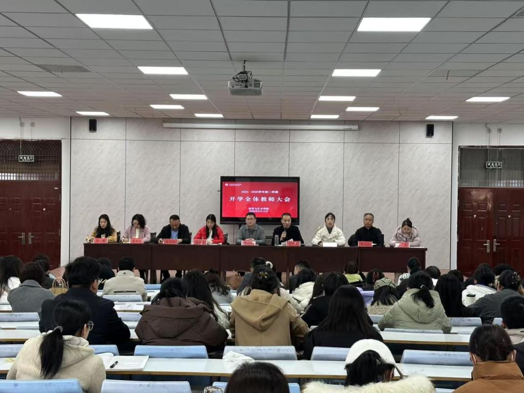 春回人间,蛇舞新篇。为开好局、起好步,抓实、抓细、抓牢新学期开学工作,确保各项工作平稳有序、高质高效推进,2月15日下午,教育与艺术学院在拓新楼二楼阶梯教室召开2024-2025学年第二学期开学全体教师大会,全体教职工齐聚一堂,以满格的状态迎接新学期的到来。