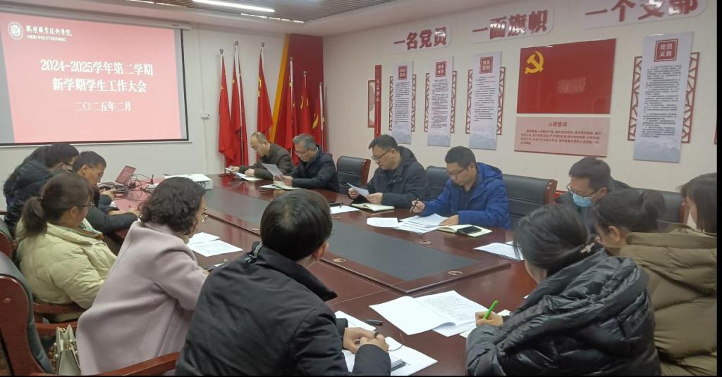 2月14日,学生工作部在海棠苑4号公寓一楼党员活动室组织召开新学期学生工作会议,学生工作部部长田华,副部长葛培运、唐景杰,各二级学院副书记及学工负责人参加。
