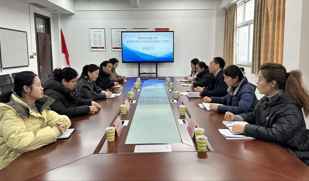 12月20日上午,鹤壁市致诚小学常青山校长一行到马克思主义学院开展大中小学思政课一体化交流学习会。依托大中小学思政课一体化虚拟教研室,推动大中小学思政课教师共同开展教学科研是探索大中小学各学段协同育人机制的有力尝试。