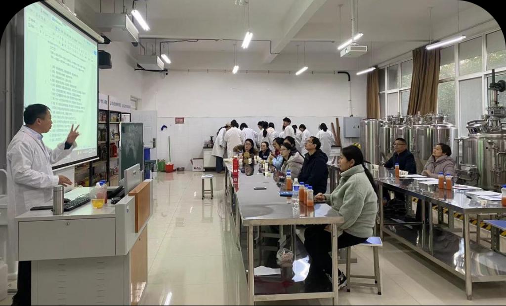 蒋明利凭借其在食品行业的深厚造诣,为学生们献上了一堂堂精彩纷呈且干货满满的课程。他以宏观的视角,深入解读了食品研发流程及发展趋势,让学生们站在行业前沿,洞察未来走向。紧接着,蒋明利毫无保留地分享了食品企业生产办理生产许可证以及项目申报的实战经验,将那些晦涩难懂的政策条文和复杂流程,通过生动的案例和深入浅出的讲解,转化为学生们易于理解和吸收的知识要点。在饮品研发设备、仪器的使用环节,蒋明利亲自进行实操演示,从设备的功能介绍到操作技巧的细致讲解,再到关键注意事项的叮嘱,让学生们仿佛置身于真实的企业研发实验室,对这些先进的 “科研利器” 有了直观且全面的认识,为他们今后从事相关工作打下了坚实的实践基础。