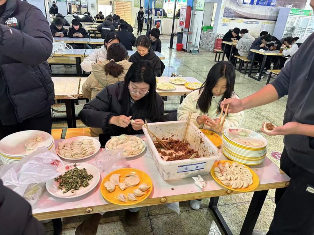 活动现场,暖意融融、笑语不断。大家分工有序,配合默契,有的负责揉面,有的负责擀皮,有的负责包馅,忙得不亦乐乎。不一会儿,形态各异、饱含心意的饺子便摆满了餐盘。师生们一边包饺子一边畅谈,分享生活趣事与学习经验,在欢声笑语中感受到传统节日带来的快乐。同学们则发挥创意,包出了各种造型独特的饺子,有传统的月牙饺,也有象征美好寓意的“创意饺”,为活动增添了不少欢乐。