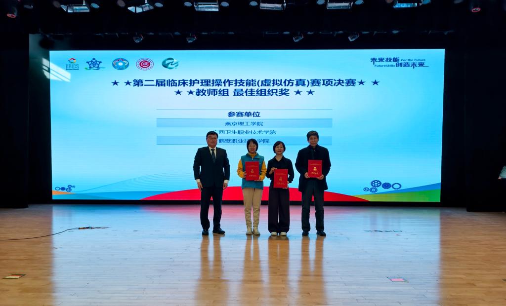 2025年12月7日,金砖国家技能发展与技术创新大赛第二届临床护理操作技能(虚拟仿真)赛项在鹤壁职业技术学院圆满落幕。鹤壁职业技术学院护理学院,荣获教师组和学生组一等奖,3人获优秀指导教师,并获学生组最佳组织奖,教师组最佳组织奖。鹤壁职业技术学院获得大赛突出贡献奖。