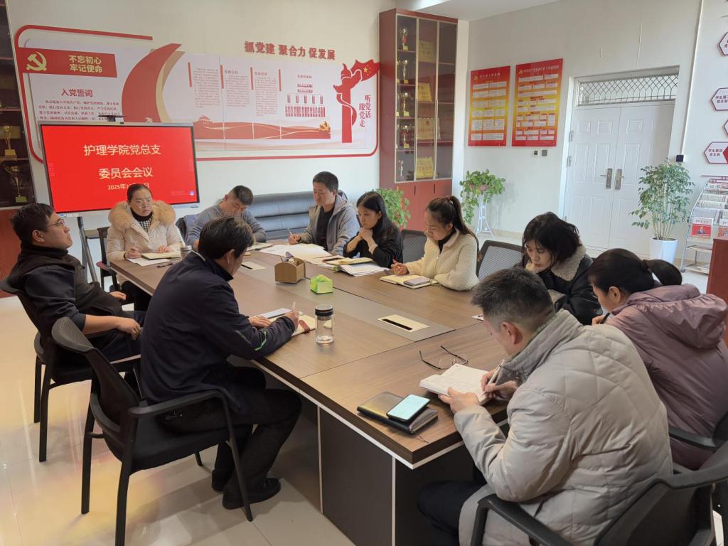 2025年12月15日,护理学院党总支在诚信4号楼B318会议室召开总支委员会会议。会议以第一议题学习为引领,统筹推进党建“双创”申报与校园稳定工作,凝聚高质量发展合力。会议由护理学院党总支书记杨尚玉主持,全体党总支委员及各办公室负责人参加。