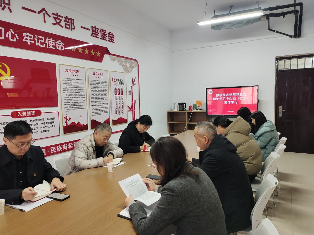 12月4日,数字经济学院党总支在樱花园校区拓新1号楼1302党员活动室开展理论学习中心组(扩大)集中学习。数字经济学院党总支书记元世娇、院长邢聪和全体党总支委员、支部委员、教研室主任参加。继续教育学院党总支书记、院长武锋代表学校党委进行巡听旁听,并进行点评。