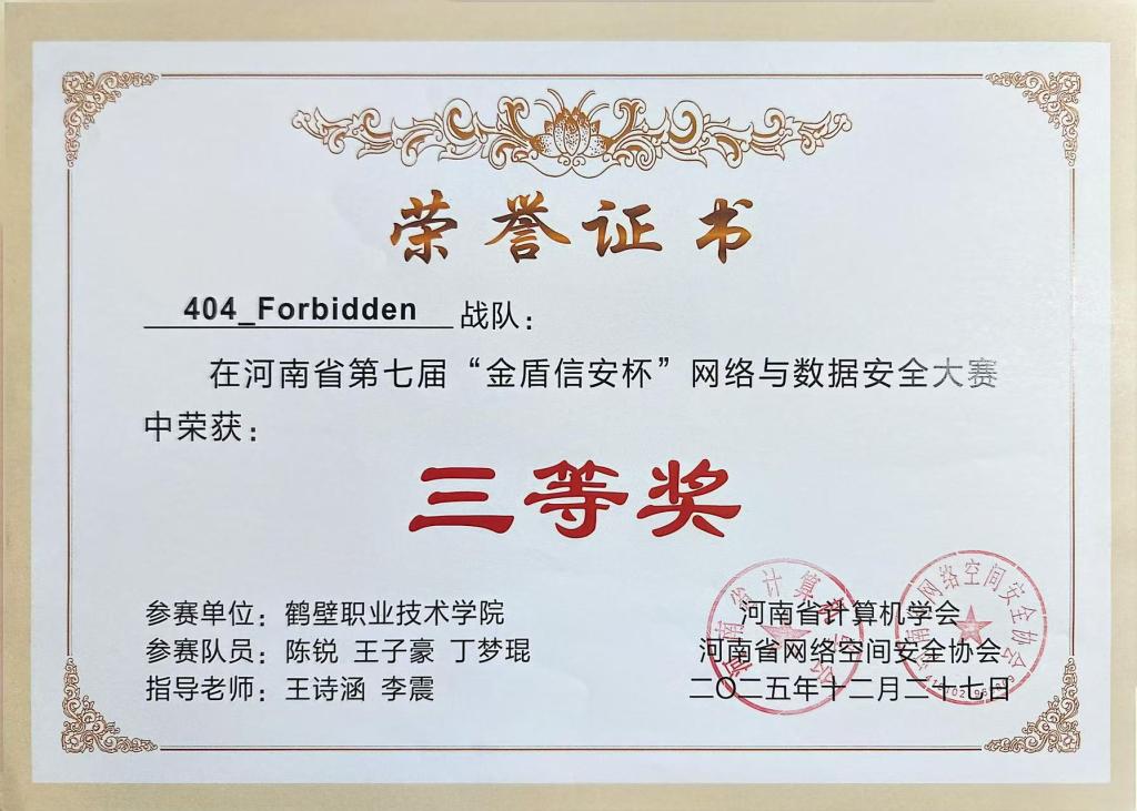 本次大赛由河南省计算机学会、河南省网络空间安全协会主办,河南省网络安全高校战队联盟、河南金盾信安检测评估中心有限公司承办,采用CTF夺旗赛模式,吸引了全省90余所院校、1200余支参赛队伍、3500余名选手参与。比赛中,我校学子在漏洞挖掘、安全防护、应急响应等关键环节展现出了精湛的技术水平、沉稳的心理素质和良好的团队协作能力。