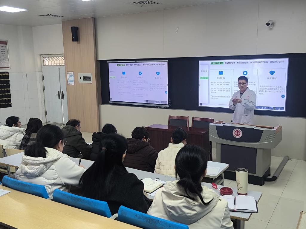3月18日下午,医学院在D315教室组织开展课程负责人说课程集体教研活动,医学院及基础医学中心全体教师参与,各教研室主任进行专业点评。