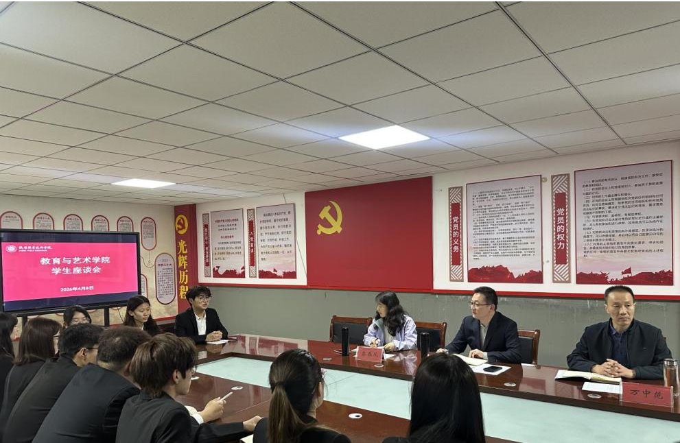为深入了解学生思想动态,切实解决学生在学习、生活等方面面临的实际困难,推动学生工作深入开展,教育与艺术学院于4月9日在拓新楼第三会议室召开学生代表座谈会。教育与艺术学院党总支书记裴小鹏、院长万中范、副书记秦春风、学管办负责人王馨,以及16名团总支学生会干部代表共同出席会议。会议由秦春风主持。