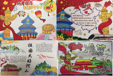 学生第一党支部录制方言版国庆主题视频,用质朴语言传递祝福,以青春旋律抒发呐喊,使爱国声量在多元表达中持续放大。活动将艺术创作与情感教育深度融合,强化了学生对国家概念的具象化认知。学生第二党支部以“欢度国庆,共贺华诞”为主题,开展手抄报创作活动。学生们通过梳理祖国发展脉络、遴选红色经典故事,以画笔勾勒国旗的炽烈鲜红,以色彩描绘山河的壮阔壮丽,将抽象爱国情感转化为具象艺术作品。学生第三党支部以“笔绘山河,礼赞祖国”为主题,开展绘画与交流活动。师生共同回顾祖国壮丽山河图景与发展成就,从长城的巍峨到江南水乡的秀美,从脱贫攻坚的突破到科技创新的飞跃,通过绘画实践深化对国家发展的直观理解。活动中,注重引导学生“爱国是内化于心的情感,更是外化于行的责任”,学生们纷纷组织志愿服务、学业互助等社会实践,彰显了新时代青年责任担当。