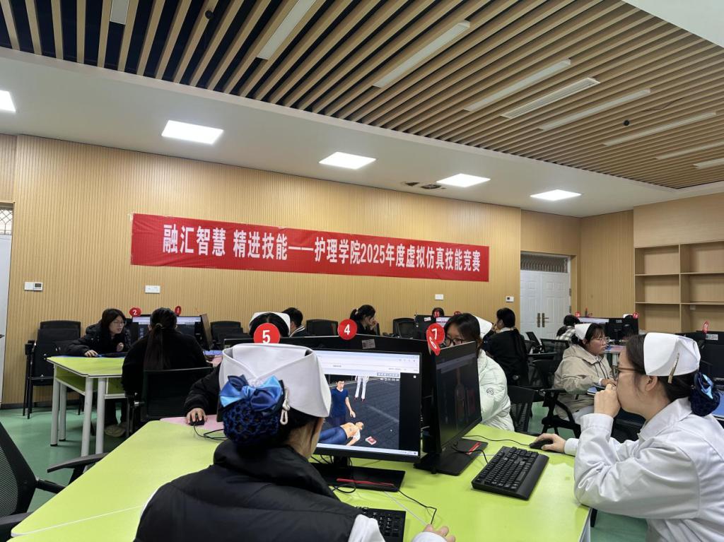 为响应国家关于“在职业教育中加大人工智能与虚拟仿真应用”的政策指引,充分发挥我校“全国急救教育试点学校”示范效应。11月5日,护理学院在B103教室举办了以“数智赋能,救在身边”为主题的2025年度虚拟仿真技能竞赛。