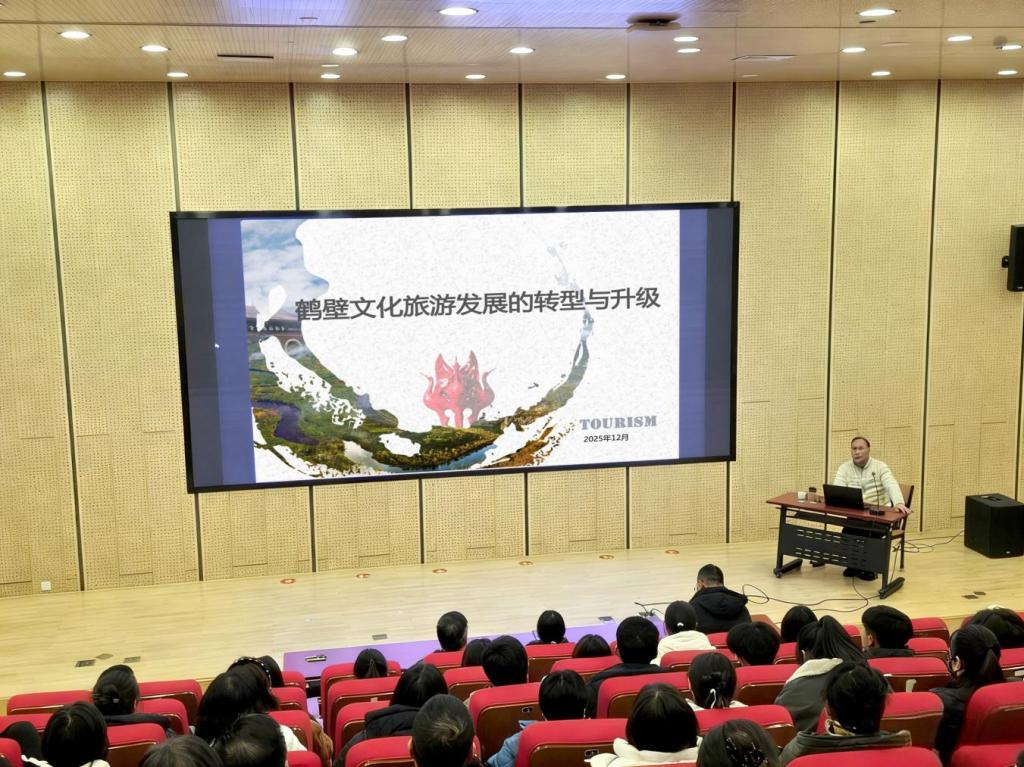 12月10日,教育与艺术学院“五育讲坛”特邀鹤壁市文化广电和旅游局二级调研员王中文,开展《鹤壁文旅发展的转型与升级》专题学术讲座,学院党总支副书记秦春风、副院长陈享振、专职组织员郭山雨及学院教师和学生代表参加,党总支书记裴小鹏主持。