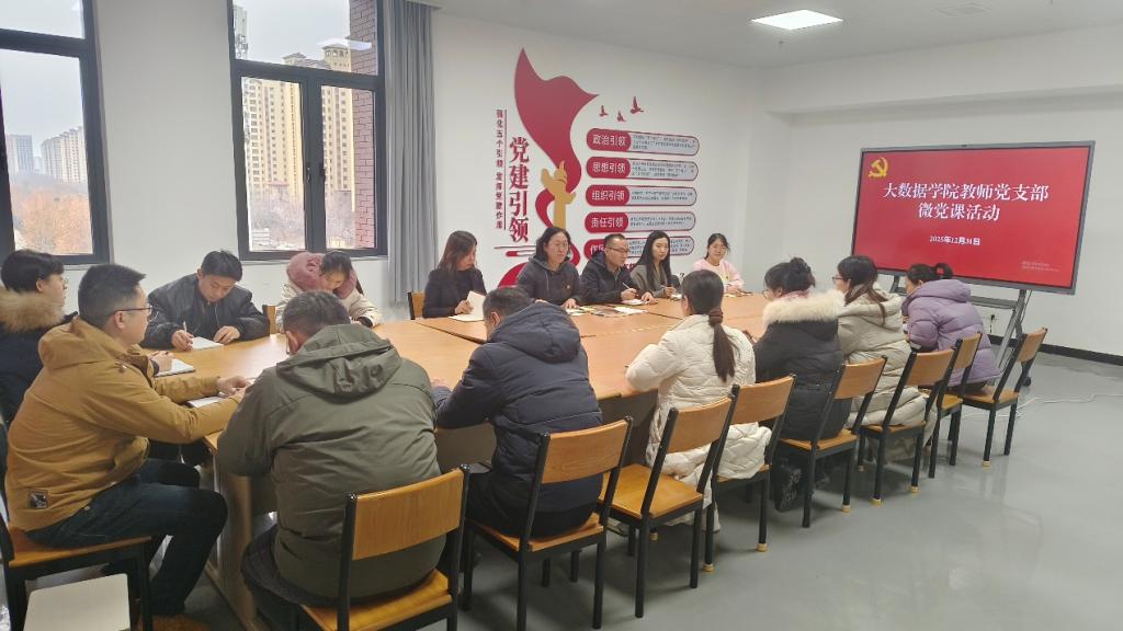 为深化理论学习、凝聚奋进力量,2025年12月31日下午,大数据学院教师党支部在力行1号楼L409开展微党课学习活动。会议由支部书记李素娟主持,全体党员参加。