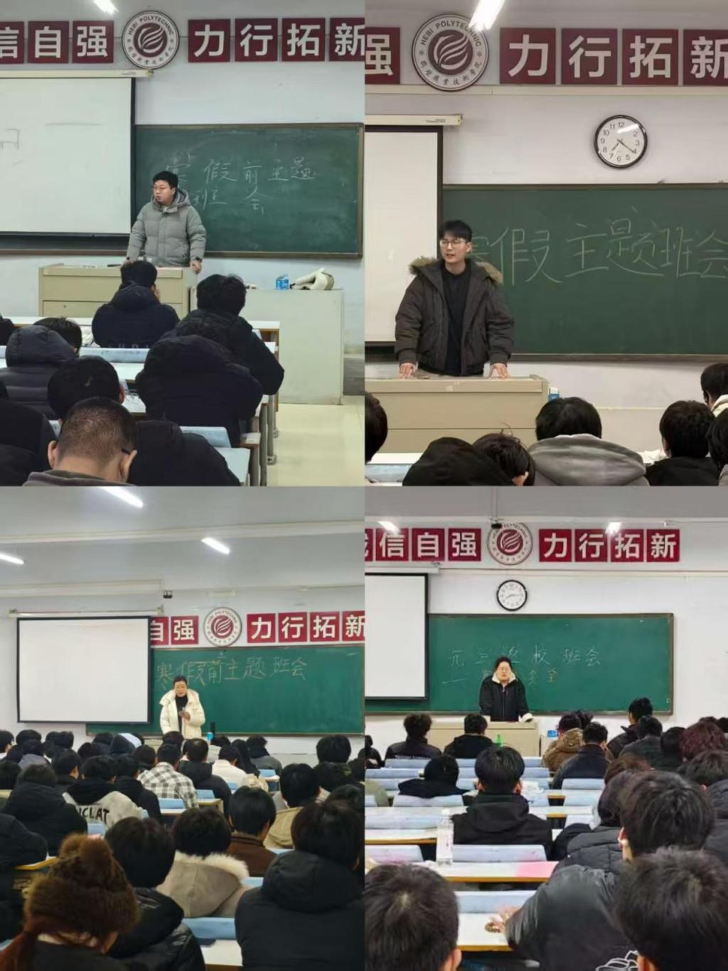 此次班会全面梳理了学期重点工作,明确了假期各项要求,为学生筑牢安全防线、规划学业生活提供了清晰指引。学生们纷纷表示将牢记班会内容,严格遵守各项规定,合理规划假期,确保度过一个平安有意义的寒假。
