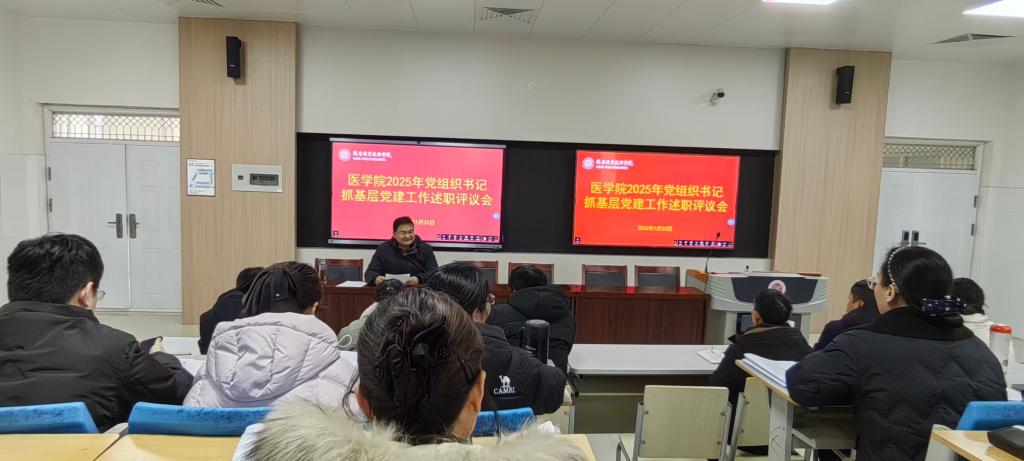 1月23日下午,医学院在D315会议室召开2025年度述职评议大会。学院领导班子、各党支部书记、各办公室负责人及教研室负责人参加会议,医学院党总支书记赵成志主持会议并讲话。