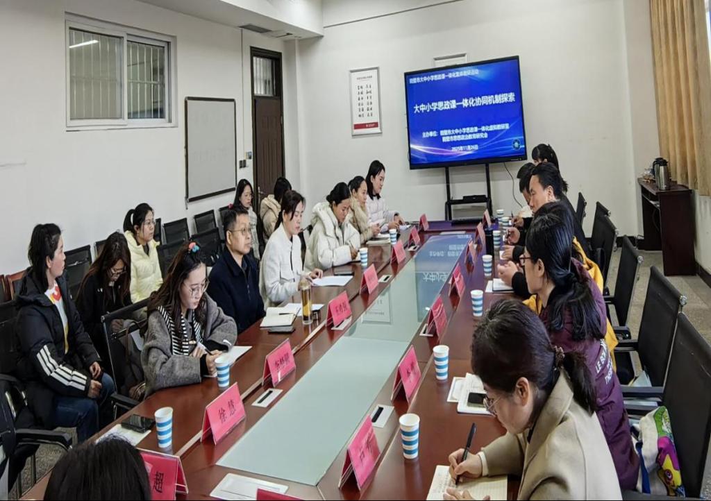 冬意渐浓,研思不辍。11月26日上午,鹤壁市大中小学思政课一体化集体教研活动在鹤壁职业技术学院马克思主义学院会议室成功举行。本次活动以“大中小学思政课一体化协同机制探索”为主题,由鹤壁市教育体育局、鹤壁市思想政治教育研究会主办,鹤壁市大中小学思政课一体化虚拟教研室承办。活动由鹤壁市大中小学思政课一体化虚拟教研室主任杨利红主持,来自全市大中小学的近30名教师参加。