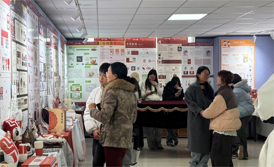 毕业设计以“创意绽放・设计河南”为主题,同学们从专业知识与技能出发,从罗山皮影戏、河南陶瓷等河南文化元素入手,对我省地域文化进行创意诠释与个性表达。答辩现场,学生围绕设计理念、创作思路、实践过程等内容逐一汇报,指导老师从创意构思、落地实践、技术运用等维度进行点评。展厅内,参展作品丰富,包含展板设计、实物模型、插画创作、产品包装、品牌视觉系统等,内容聚焦传统文化创新再造、社会公益、地方文旅IP打造等方向,展现了学生对本土文化与时代热点的思考与探索。