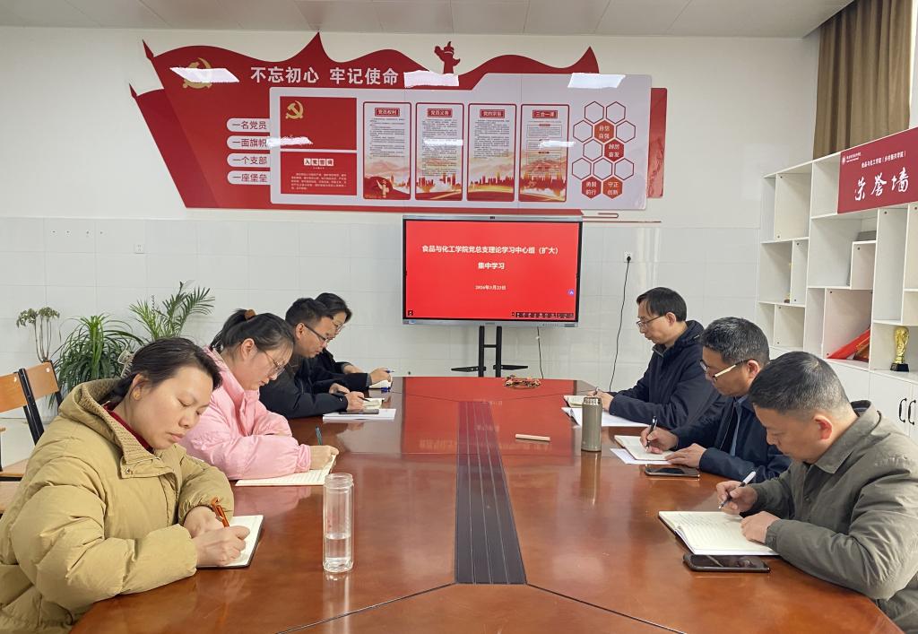 3月23日,食品与化工学院党总支于诚信6号楼A203会议室,组织召开理论学习中心组(扩大)集中学习会议。