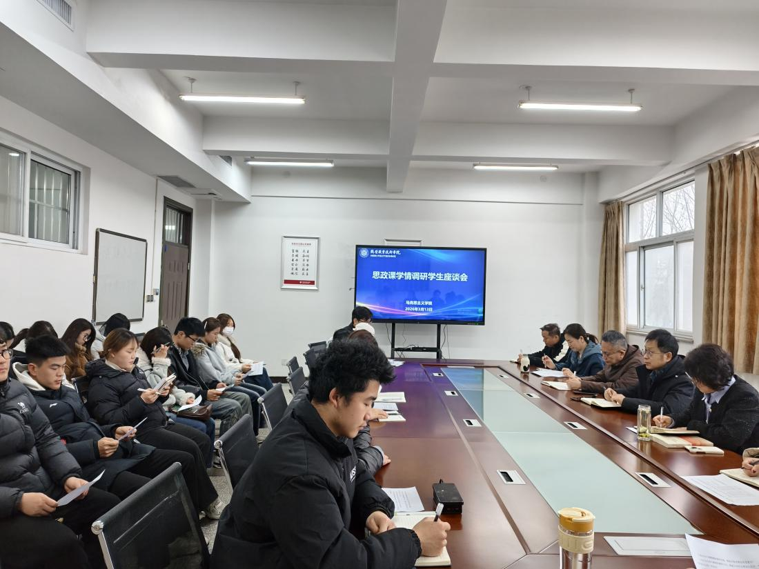 3月13日下午,马克思主义学院举办思政课学情调研学生座谈会,搭建师生平等对话平台,倾听学生对思政课的意见建议,助力教学质量提升。马克思主义学院党总支书记、院长王勇强,党总支副书记杨慧鹏,副院长刘断思、杨利红,教师代表以及来自各年级、各专业的23名学生代表参加,刘断思主持会议。
