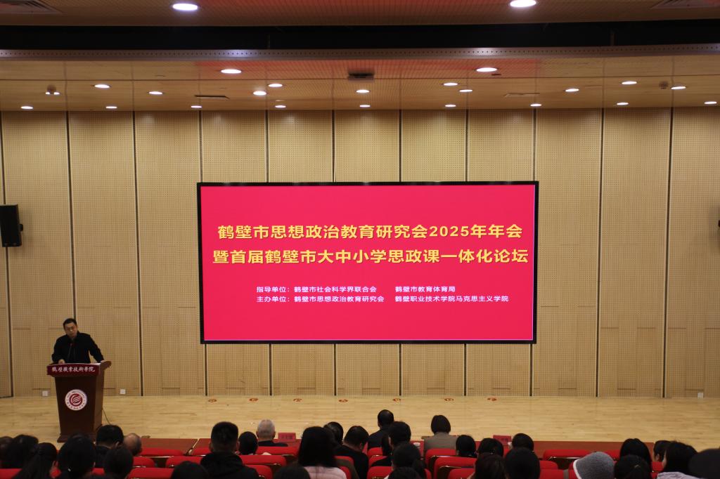 11月1日,鹤壁市思想政治教育研究会2025年年会暨鹤壁市首届大中小学思政课一体化论坛在鹤壁职业技术学院举行,旨在深入贯彻落实习近平总书记关于学校思政课建设的重要指示精神,精准推进大中小学思政课一体化改革创新,加快构建新时代“大思政课”育人格局。本次活动由鹤壁市社会科学界联合会、鹤壁市教育体育局指导,鹤壁市思想政治教育研究会与鹤壁职业技术学院马克思主义学院共同主办,全市县区教育行政部门有关负责同志、高...